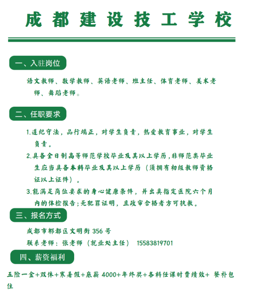 招聘|成都建设技工学校招聘音乐老师、美术老师