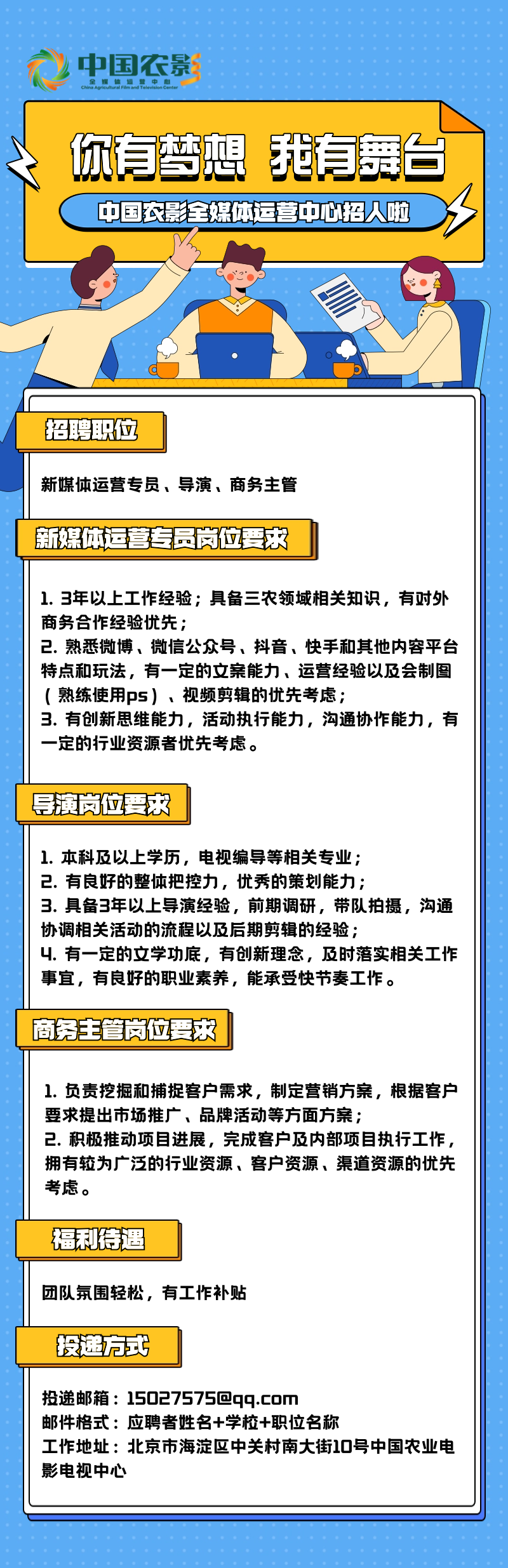 中国农业电影电视中心是农业农村部直属公益二类事业单位,主营业务有对农新闻宣传、电影影视制作、线下活动承办、新媒体运营等,是中央新闻单位、农业农村部直属宣传单位、大型综合性影视创作生产基地、“国字号”现代传媒机构。
