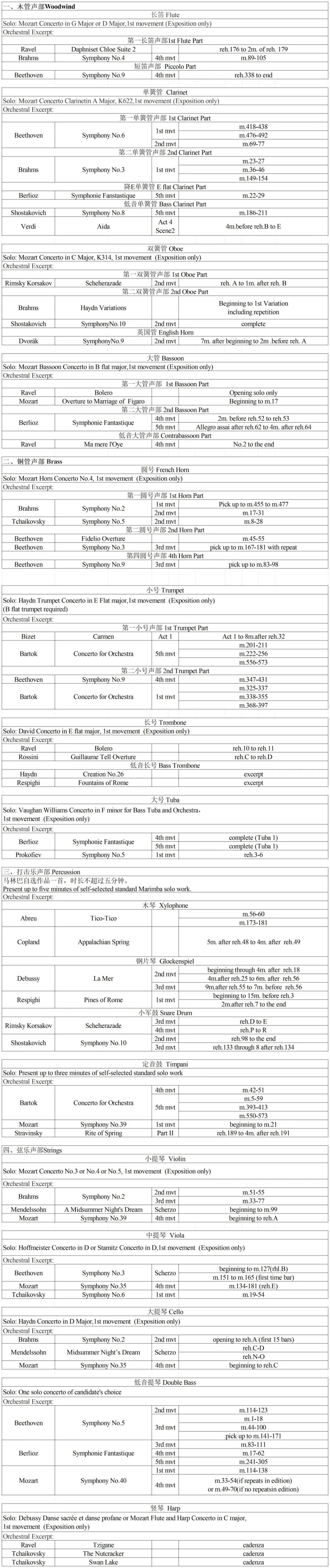 初试内容仅协奏曲,通过邮件提交视频文件,曲目详见附件。复试为面试。
