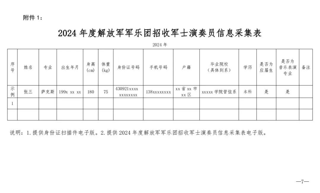 考生提供个人信息表电子版(附件1),并提供身份证扫描件电子版;录制演奏视频(视频需同期录制一镜到底,不得剪辑不得做后期处理,格式为MP4,不超过200M),发送至解放军军乐团招考办,邮箱地址:jfjjytzzsg@sina.com,时间截止至2024年3月20日24:00。