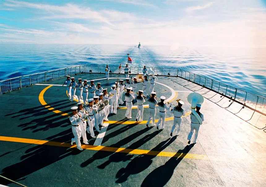 海军军乐团是人民海军专业军乐司礼乐团,先后参加并圆满完成庆祝中国共产党成立100周年大会、国庆阅兵、海上阅兵等党和国家、军队重大庆典活动中的军乐司礼任务;多次受邀参加国际军乐节、海军节、管乐艺术节,出访60多个国家和地区,出色完成重要外事活动,被誉为“展示海军形象的靓丽名片”。乐团特色鲜明,致力交响管乐、现代行进乐、轻音乐等多种表演形式,创演《巨浪》《航程》《与祖国同行》等多部优秀交响管乐作品,录制发行《海军礼仪用曲》《大海雄风》等多部军乐专辑,编创演绎《太平洋的梦》《走进轮机舱》等多部军乐行进表演作品,影响广泛,反响良好。