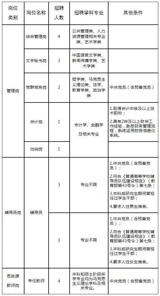 详见《郑州大学河南音乐学院2024年度公开招聘工作人员岗位信息表》(附件1)。