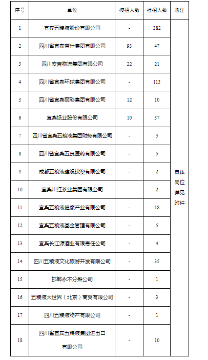 根据五粮液集团公司(以下简称“公司”)业务发展需要,为深入实施人才强企战略,筑牢公司人才支撑,决定招聘一批技术和管理人才。现将具体事宜公告如下。
