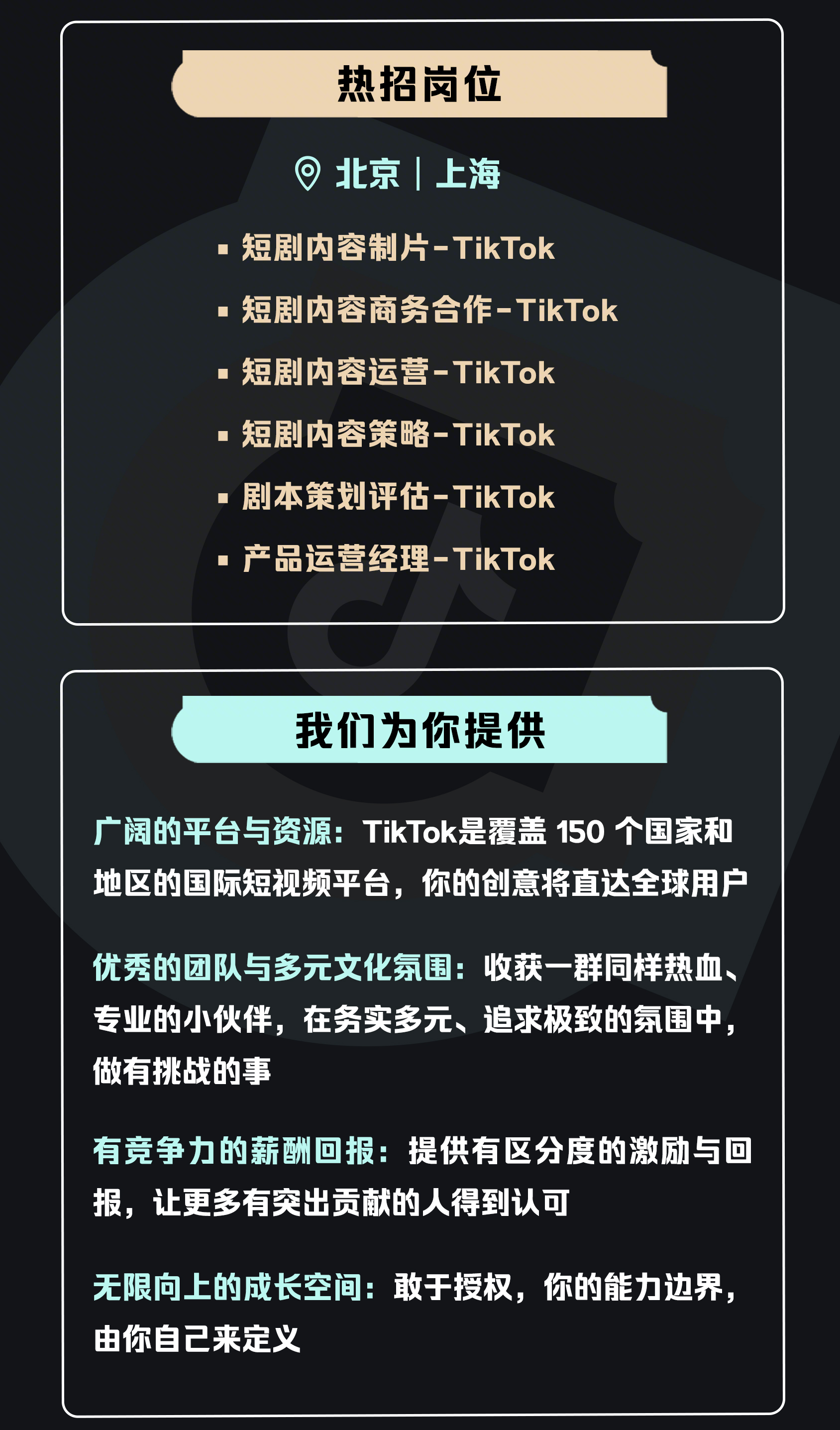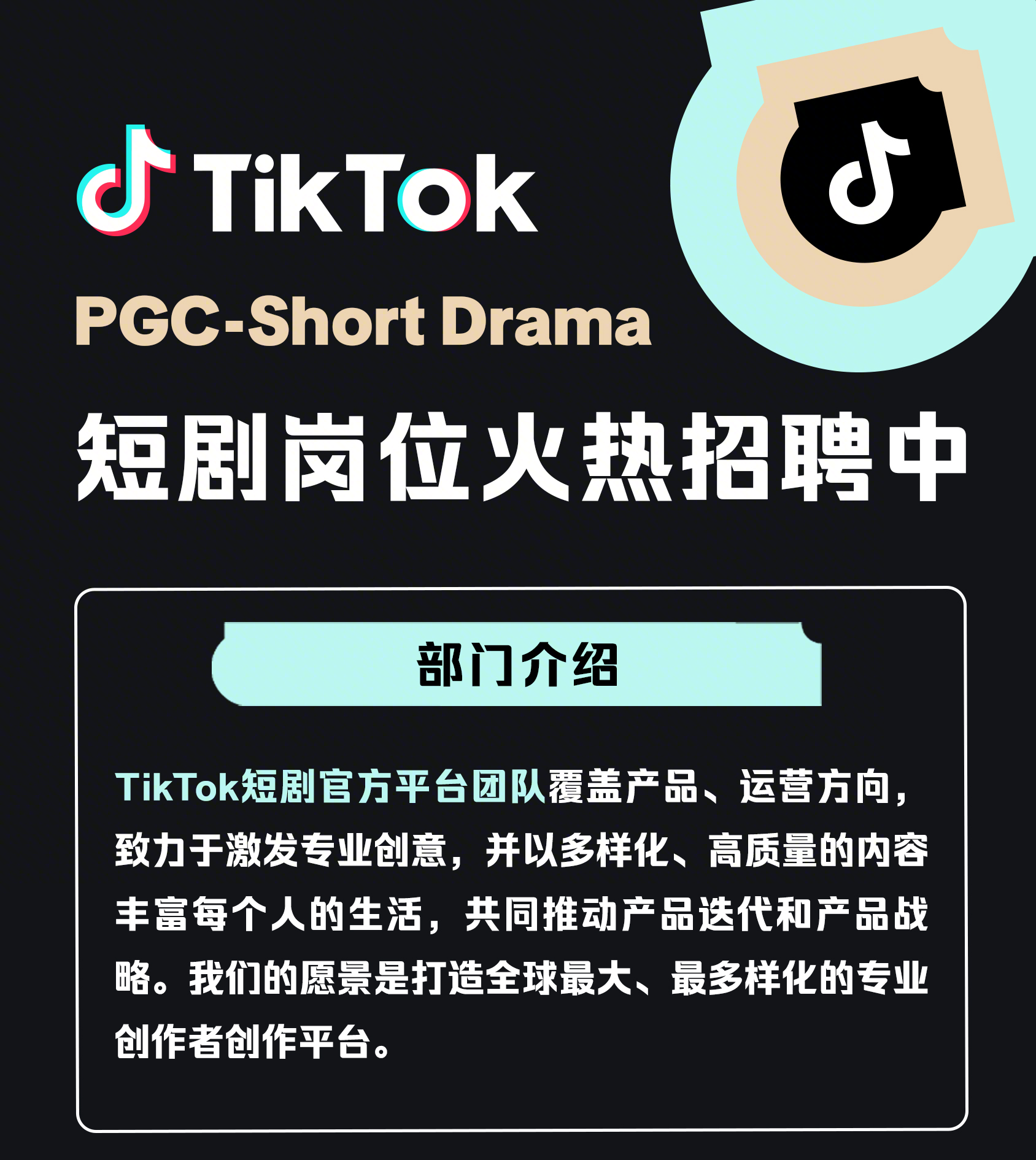 招聘 | TikTok短剧官方平台团队6大岗位邀你投递!