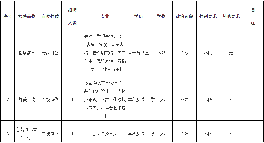 福建人民艺术剧院成立于1952年,是隶属福建省文化和旅游厅的公益二类事业单位,承担我省话剧、儿童剧的艺术创作、演出、对外交流等职责的省级专业文艺院团。因工作需要,拟向社会公开招聘专业技术岗位工作人员9名。根据《福建省省属事业单位公开招聘工作人员考试暂行办法》的规定,制定具体方案如下: