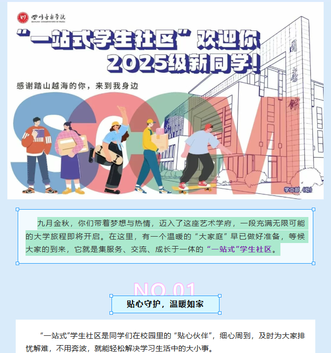 九月金秋,你们带着梦想与热情,迈入了这座艺术学府,一段充满无限可能的大学旅程即将开启。在这里,有一个温暖的 “大家庭” 早已做好准备,等候大家的到来,它就是集服务、交流、成长于一体的 “一站式”学生社区。