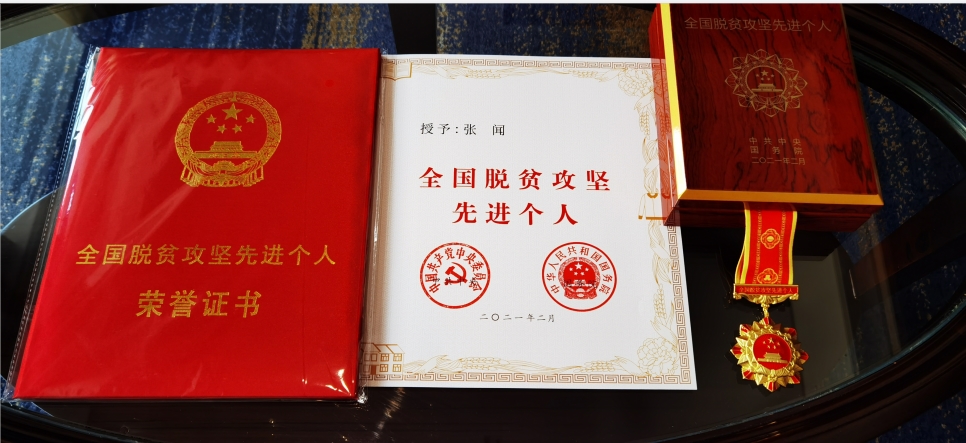 “经过全党全国各族人民共同努力,在迎来中国共产党成立一百周年的重要时刻,我国脱贫攻坚战取得了全面胜利。”随着习近平总书记的话音落下,中国脱贫攻坚的战斗宣告胜利,困扰中华民族几千年的贫困问题得到了历史性解决。在这场脱贫攻坚战役的背后,无数扶贫英雄去往贫困第一线,用坚韧不拔的毅力、使命在肩的初心,在那片土地上倾力奉献,哺育出一片硕果累累。2021年2月25日,全国脱贫攻坚总结表彰大会在北京人民大会堂隆重举行。张闻以全国脱贫攻坚先进个人身份受邀走进了人民大会堂,站在了国家的领奖台上,接受了习近平总书记的接见。