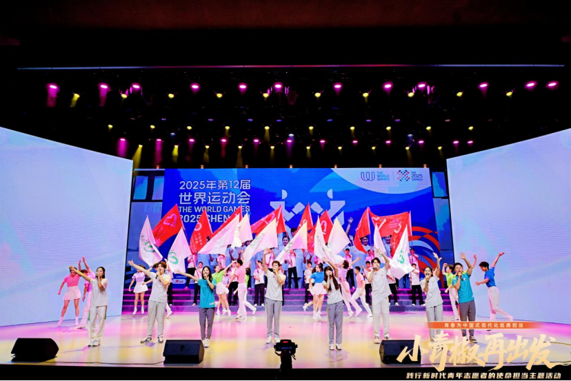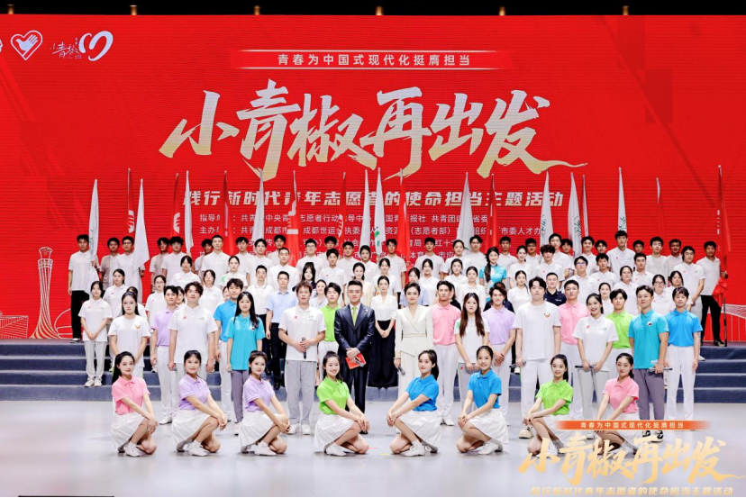 近日,由共青团中央青年志愿者行动指导中心、中国青年报社、共青团四川省委指导,共青团成都市委、成都世运会执委会人力资源部(志愿者部)等部门联合主办的“‘小青椒’再出发——践行新时代青年志愿者的使命担当主题活动”在成都大学举办。在这场全市青年志愿者的青春盛会我校流行音乐学院与舞蹈学院受邀参加,两院学子联袂登台,以精彩的合唱表演与舞蹈编排,为世运会推广歌曲《与你同在》注入鲜活的艺术生命力。