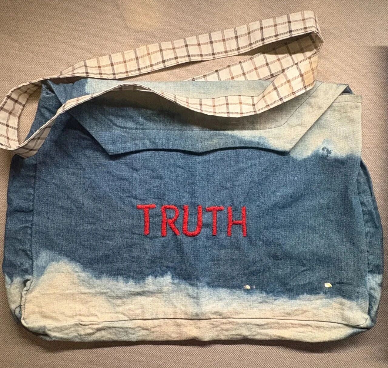 9位君子毫不犹豫 郑重签下名字 张查理的夫人宫菱波 还特意赶做了一个蓝缎子外皮 并绣上了红字“TRUTH”(真相)