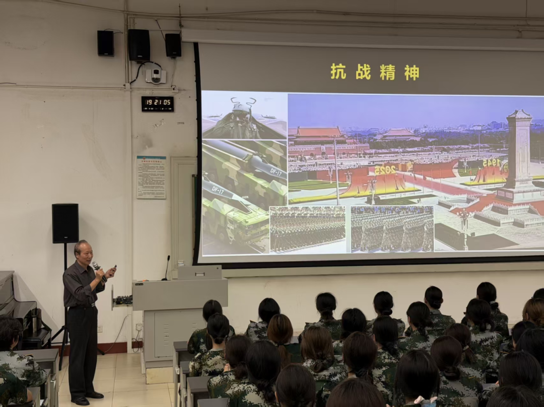 同时,学校特邀四川音乐学院关工委宣讲团成员、曾在空军部队服役二十八年且拥有五十年党龄的老兵刘永林同志,在新都校区开展 “弘扬抗战精神 继承光荣传统 争做时代新人” 主题国防教育讲座。活动现场,老兵用鲜活的军旅故事、深刻的精神解读,让新生们进一步增强国防意识、坚定理想信念,反响热烈且教育意义深远。