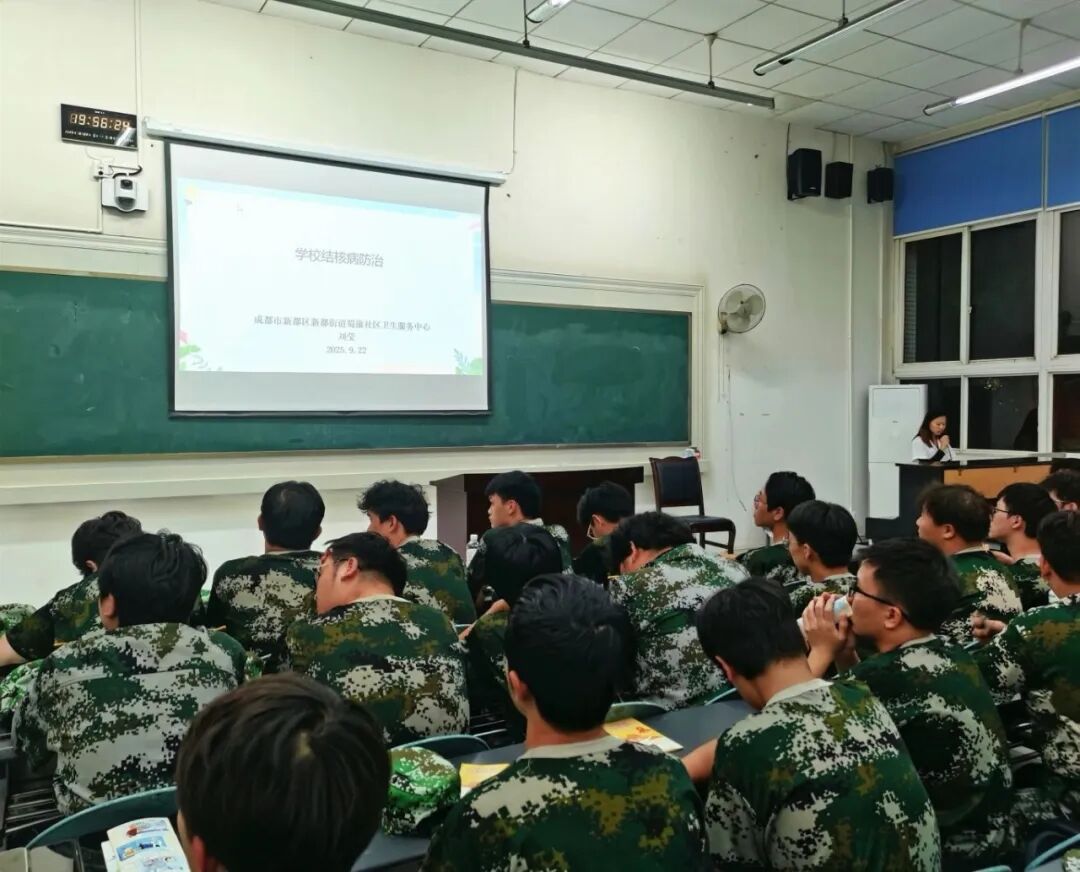 健康是青春的底色,学校高度关注新生身心健康。校医院特别邀请蜀康社区卫生服务中心专家到校,围绕“预防艾滋,珍爱生命”“预防结核,保护肺脏”等内容开展健康知识普及活动。专家通过图文讲解、现场答疑,详细介绍疾病传播途径与科学预防方法,倡导新生树立 “主动防护、科学健康” 的生活理念,为大学生活筑牢健康屏障。